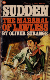 When Jim Green took on the job of Marshal in the roaring hell town of Lawless, he soon knew he'd tackled a tough one. But he had no idea just how tough a job it was until he discovered there was a man pirating around the town on a black stallion and calling himself Sudden. Jim Green wanted to meet this Sudden personally over six-guns. Because Jim Green happened to be the real Sudden. . . TAPE ON SPINE