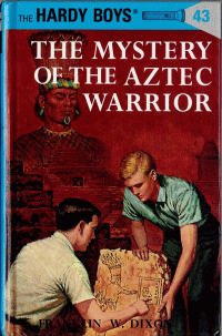 The handwritten will of a deceased world-traveler is strange and mysterious. Its cryptic instructions are to deliver the valuable Aztec warrior to the rightful owner, a descendant of an Aztec warrior. Frank and Joe Hardy have only one slim clue to work with: the name of a complete stranger who can help. Despite the harassments, the threats, and the attacks made upon them, Frank and Joe unravel clue after clue in their adventure-packed search for the living descendant of the mighty Aztec nation which once ruled in Mexico. It takes as much high courage as clever deduction for the young detectives to defeat their ruthless foes and to decipher the fascinating secrets of the strange and mysterious will.